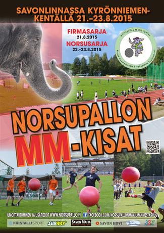 Norsupallon VIII Maailmanmestaruuskilpailut pidetään Savonlinnassa 21-23.8.2015. Ottelut perjantaina 21.8.2015 Norsusarja:Ottelut la-su 22-23.8.2015
